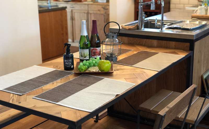 ※室内は無垢材や漆喰を使用しているため、匂いが残りやすくなっております。調理の際は換気をしていただき、退出前に備え付けの消臭スプレーのご利用をお願いいたします。