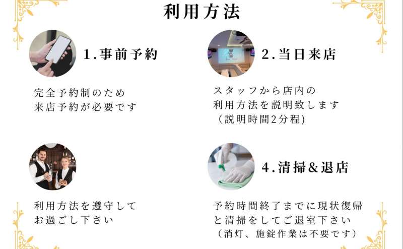 ■当日は店舗にてスタッフから利用方法の説明を致します。