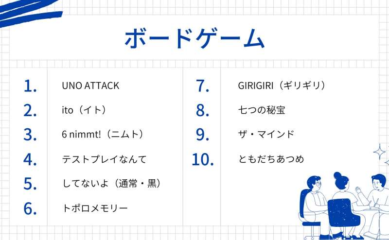 現在「50種類」以上のボードゲームを用意しております。
