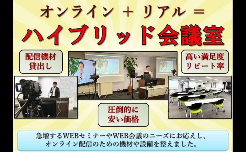 【オンライン配信会場】または リアル+オンラインの参加者人数を調整できる【ハイブリッド利用】のご予約が増えておりますが、もちろんソーシャルディスタンスを保ちながら、通常のご利用もいただけます。
