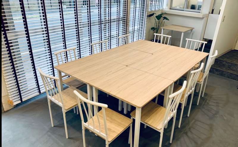 【設備】椅子(15名分)、テーブル(7台)、キッチン、陳列棚、ホワイトボード、プロジェクター完備
