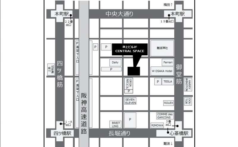 地下鉄心斎橋駅から徒歩4分、御堂筋からすぐの絶好のロケーションのシックなビル内にあるレンタルスペース、展示会場です。近隣にはカフェやセレクトショップもありお洒落で落ち着いた雰囲気の場所です。