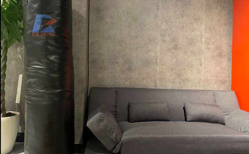施設:ロッカー・ソファ・BOSEスピーカ・サンドバッグ ・スマホ三脚