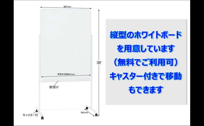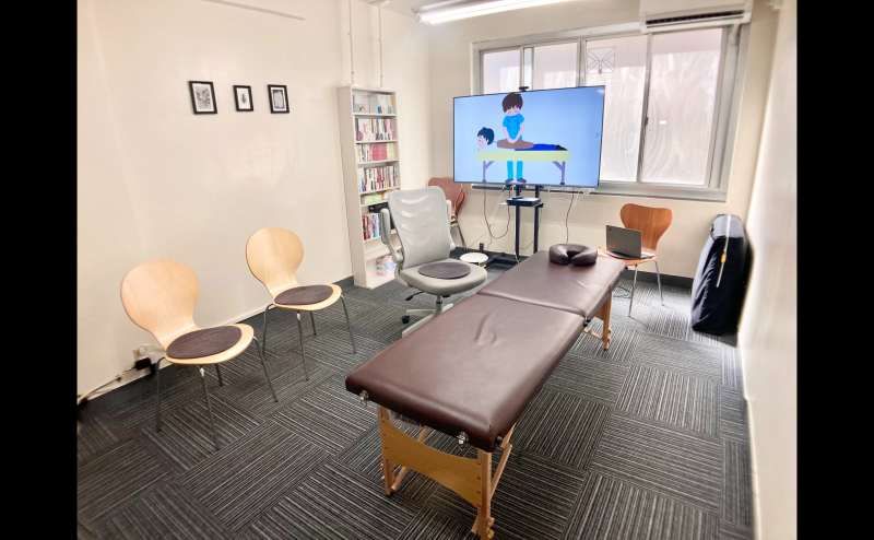 【設備】65インチ大型TV、ブルーレイ・DVDプレイヤー、高速光Wi-Fi、自撮り用LEDリングライト、椅子(12名分)、テーブル(2台)、ホワイトボード、施術ベッド(2台)、小型スピーカーフォン、除菌スプレー、ハンガー、スティッククリーナー他