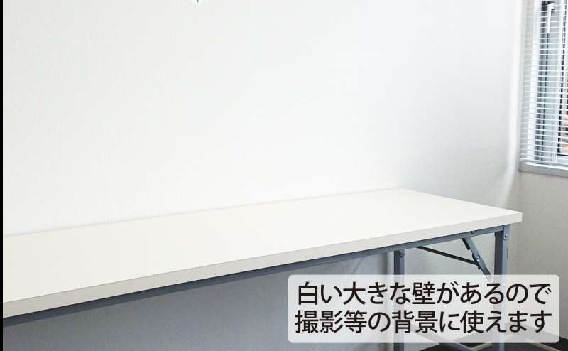 少人数による、会議、セミナー、商談、自習、サークルなど幅広い用途でご利用いただけます。大きな白一色の壁があるので撮影背景にもお使い頂けます。また、土足可としているため、靴の履き替えによる煩わしさが無くご利用いただけます。