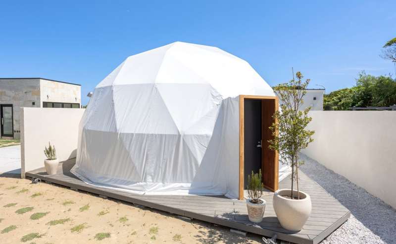 九十九里浜のちょうど真ん中に位置したリゾートグランピング施設内の気軽にグランピング体験がしたいといった方におすすめなアウトドアライクなドームテント。