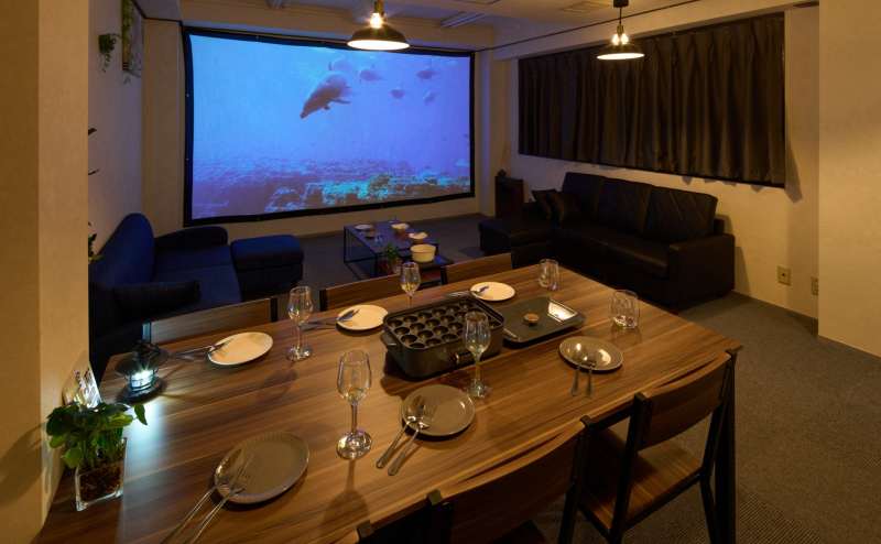 平塚駅西改札口から5分、キッチン完備のプライベートシアタースペースです。