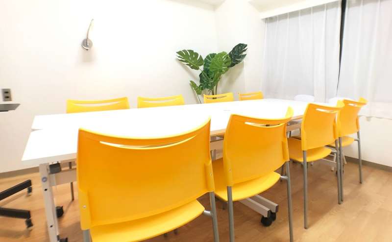 机をくっつけて囲む形で着座するレイアウトにすると最大10名が使用可能(3枚目写真)
