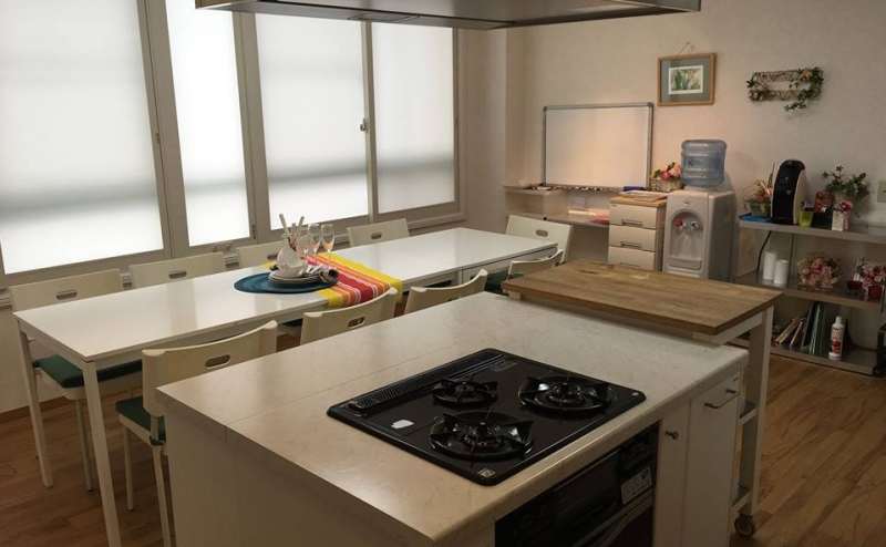 白を基調にした明るいキッチンスタジオです。TV番組撮影にも利用されています。