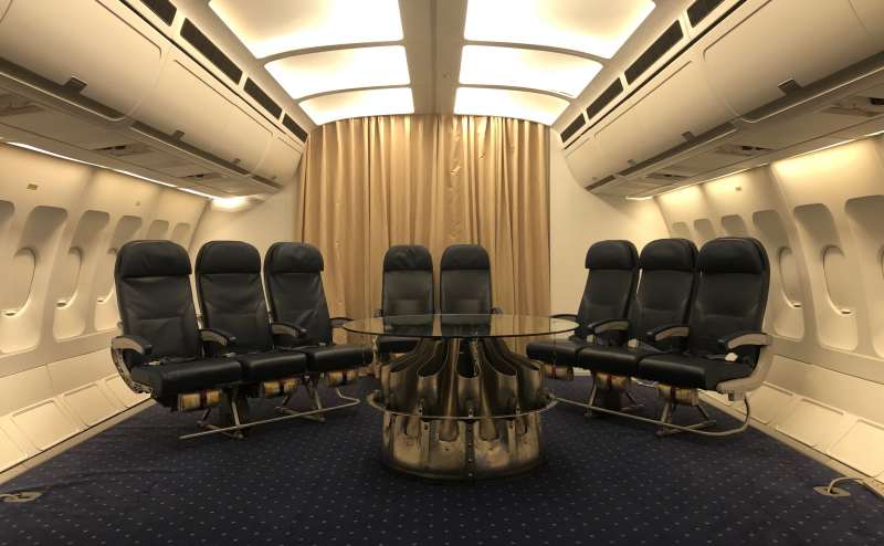 キャビンモックアップは、本物の飛行機部品を搭載した「エアバス320 実寸サイズのキャビン型スペース」です。