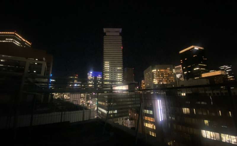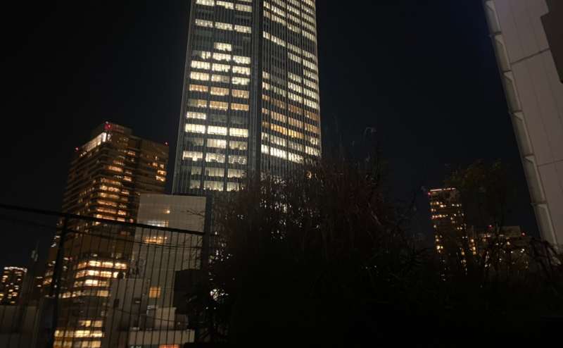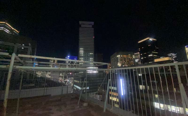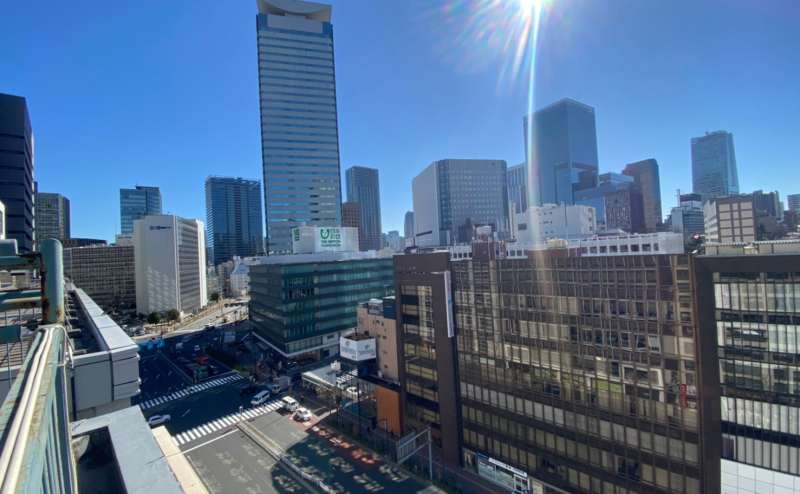晴れた日の昼間はビル群の合間に青空が広がり、夕方には綺麗な夕日が降り注ぎます。夜には周りのビルの明かりに包まれます。