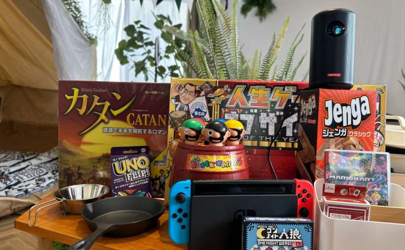 (カタン、人狼ゲーム、トランプ、UNO、人生ゲーム、ジェンガ、超飛び黒ひげ危機一発)