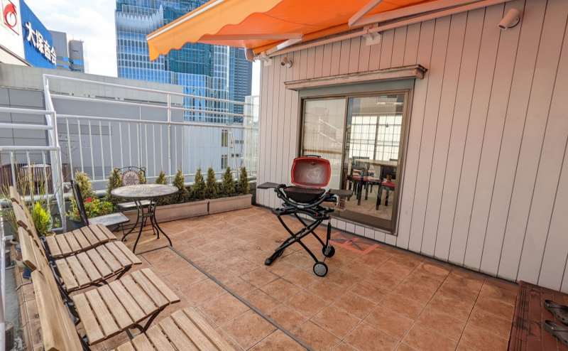 西新宿のビル街を一望できる解放感たっぷりのBBQスペース。