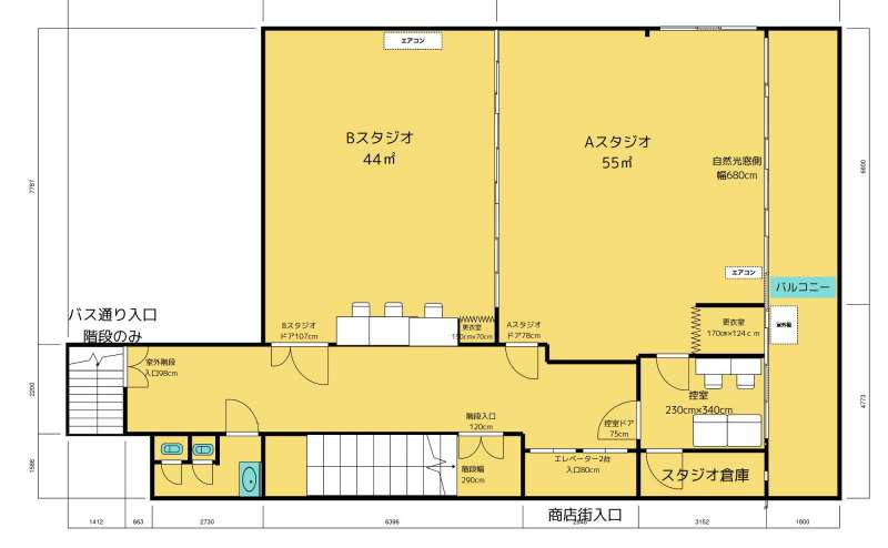 当スタジオは吸音、防音工事を施しおりません、外の音、隣りのスタジオ音が入る可能性があります。
