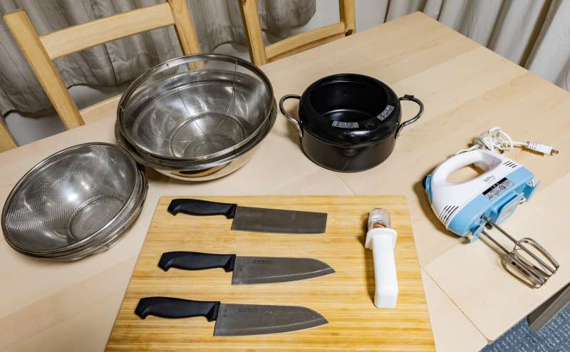 🎁たくさんの設備が充実しており、調理器具や食器、Blu-rayプレイヤー、フライパンなどが揃っています。
