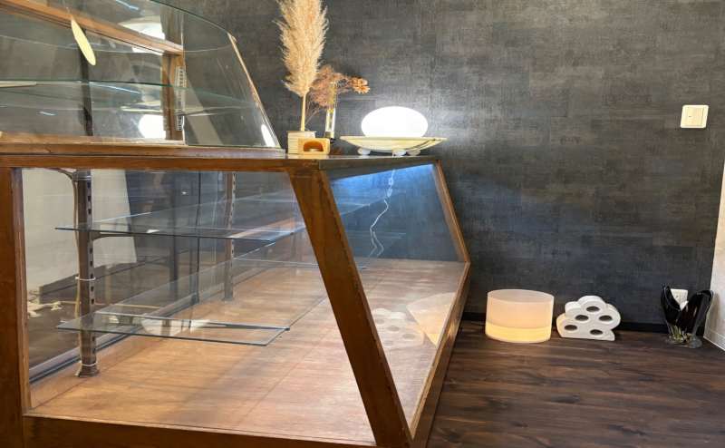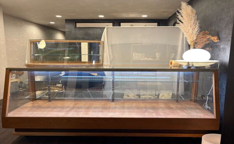 ショーケースのカウンターを、含めた店舗前面の4畳ほどのスペースですが、