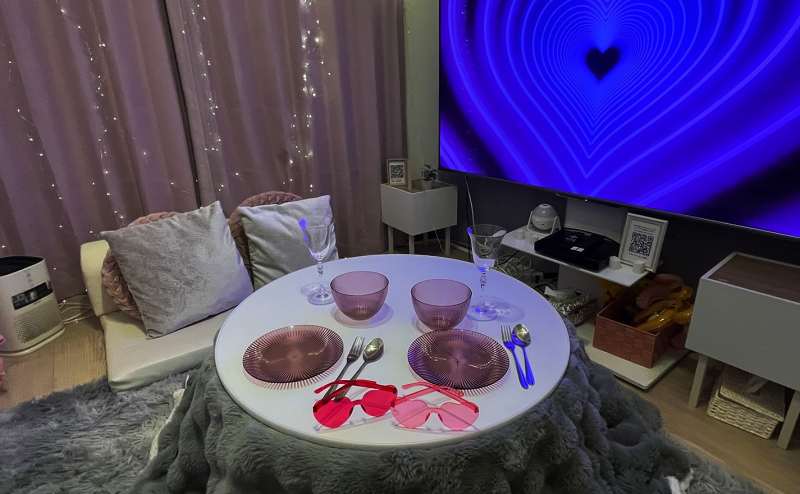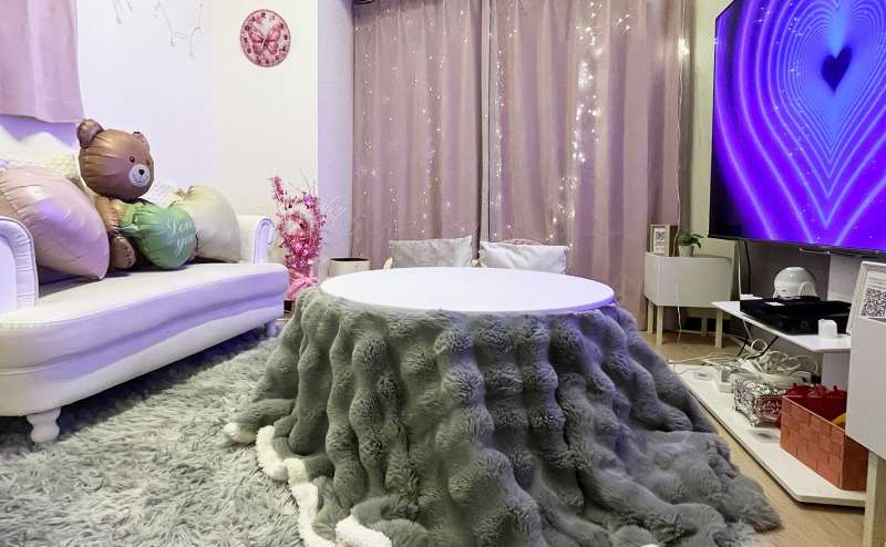 こたつ×ライトアップの“ほっこり空間”。写真映えする雰囲気で女子会/推し会/誕生日会/ホームパーティーにもピッタリ!