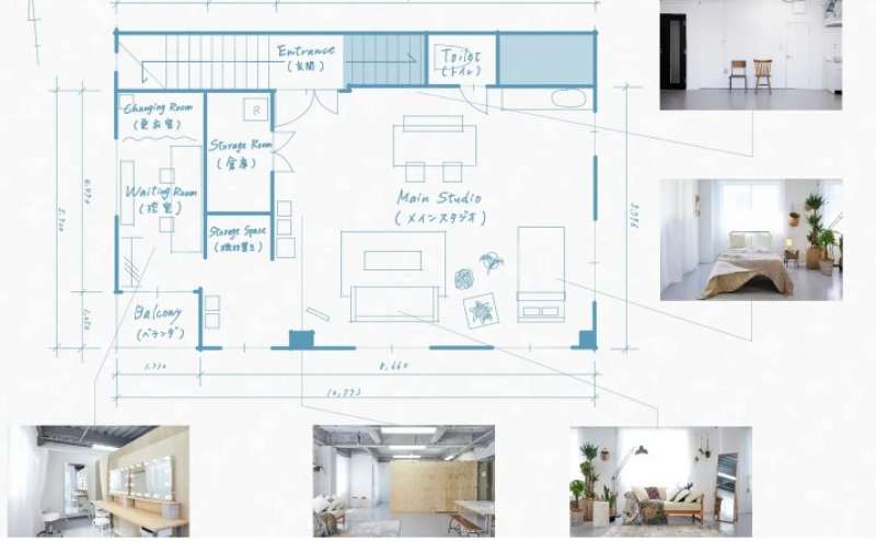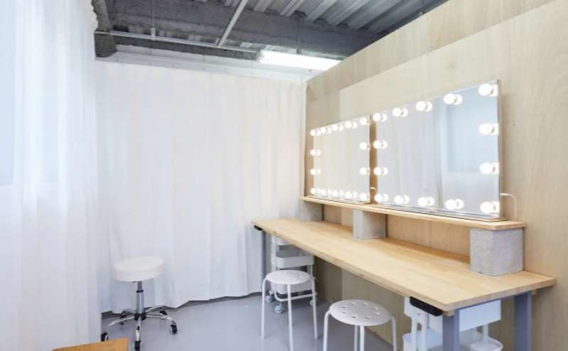 同じフロアに控室・メイクルーム・更衣室・機材スペースを完備しており、使い勝手の良いスタジオとなっております。