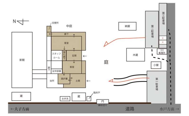 宮田家の歴史は重厚であり、多くの土地を手放した現在でも広大な庭には複数の蔵や竹やぶが広がり、箱井戸に湧く水は心地よい音を響かせ、厳かな空気を放つ母屋には、客人でも当時は滅多に足を踏み入れることのできなかった奥座敷、そして昔懐かしい土間も。