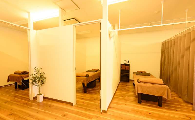 施術ベッドはカーテンで仕切られており、プライバシーも守られます。