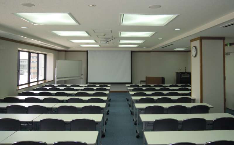 スクール形式最大で70名 演台、ホワイトボード1、スクリーン天井から引き下ろし式