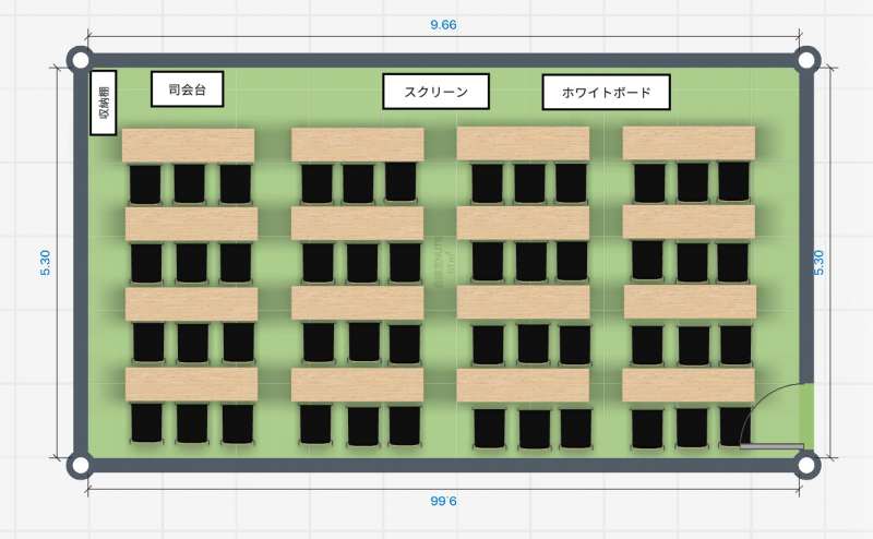 ・48名着席可能な60㎡の広々空間で会議/セミナー/説明会/ワークショップができる!