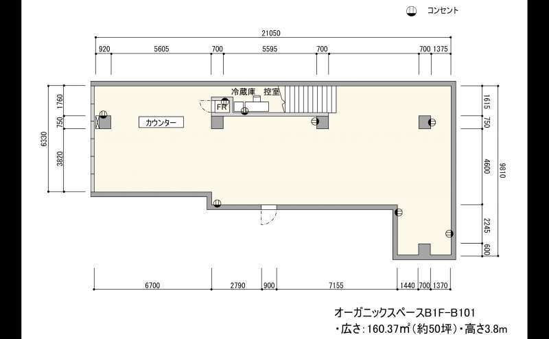 大きなカウンターとフィッティングルームも兼ね備えたマルチなスペースです。控室1か所と出入口も2か所あり、多目的な用途で利用もできる、吹き抜けがある開放感あふれた空間です。