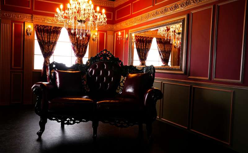 白レンガ・花壁・バロック調・階段付きコンクリート調の4種類の背景を使用出来るお部屋になります。