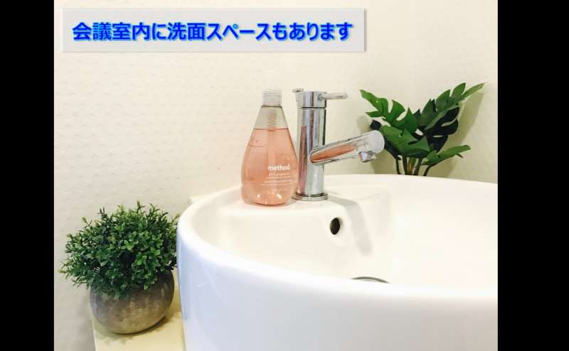 表示にある21平米は、会議スペース以外のトイレ・洗面所も含めた延べ床面積です。