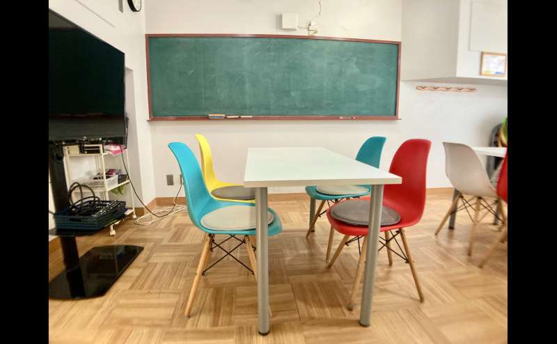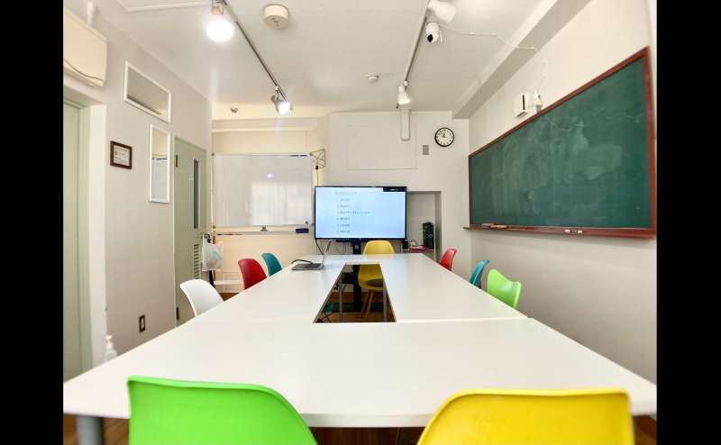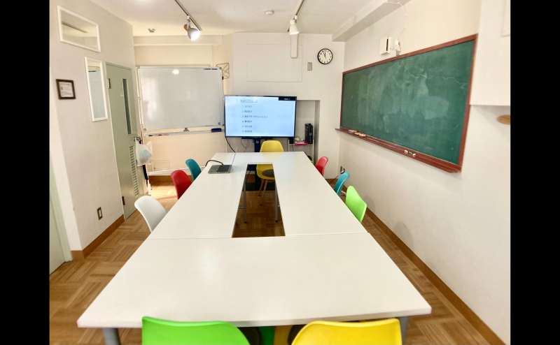 スペース内には、パソコンから外部モニターとしてHDMIケーブルで接続できる49インチ液晶テレビ、大きな黒板、ホワイトボード、LEDリングライトなどを設置しています。