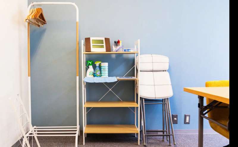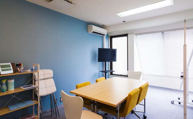 椅子(10名分)、テーブル(2台)、ホワイトボード(1台)、無料高速Wi-Fi、PC接続用テレビモニター(地上波放送視聴可)、ブルーレイ・DVDプレイヤー、LEDリングライト、施術ベッド、スタンドミラー