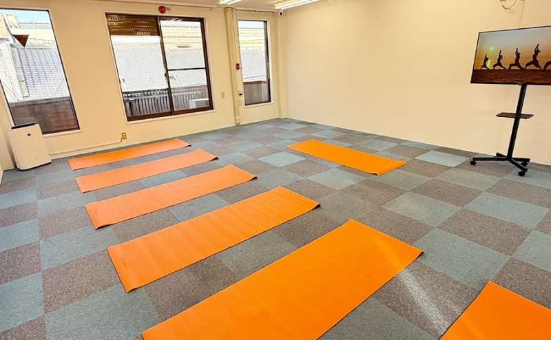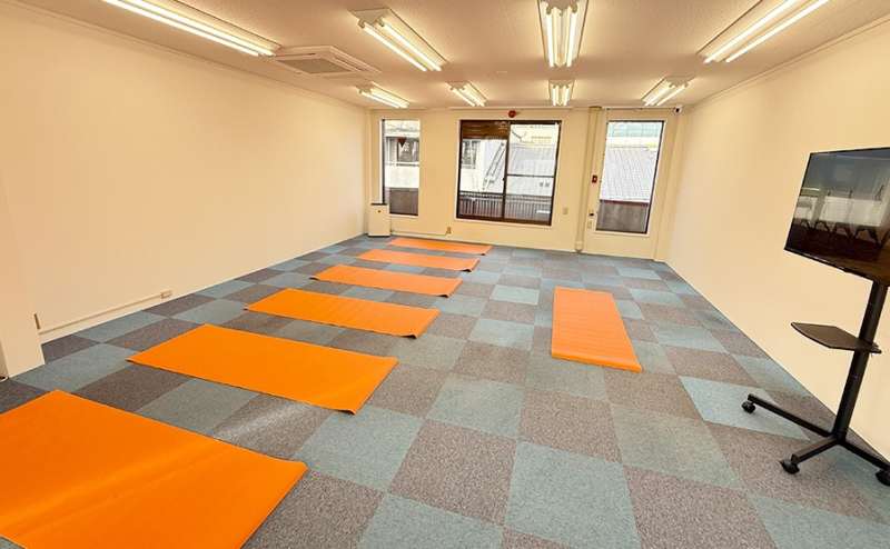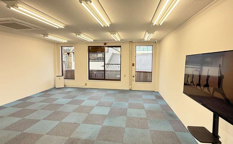 ヨガやダンスの自主練、少人数のレッスン準備にぴったりの空間です。白壁で撮影しやすく、広さ63㎡の広々とした空間。