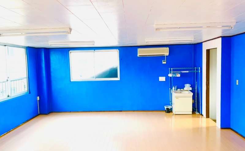 青い壁で映える空間なので撮影・イベント会場