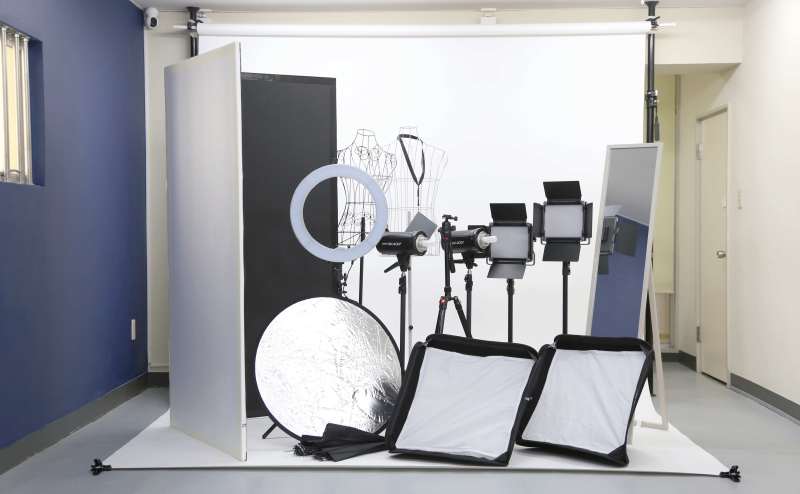 白い背景布もありますので、無背景の撮影も可能です。※ご自身で組み立てを行う必要がございます。