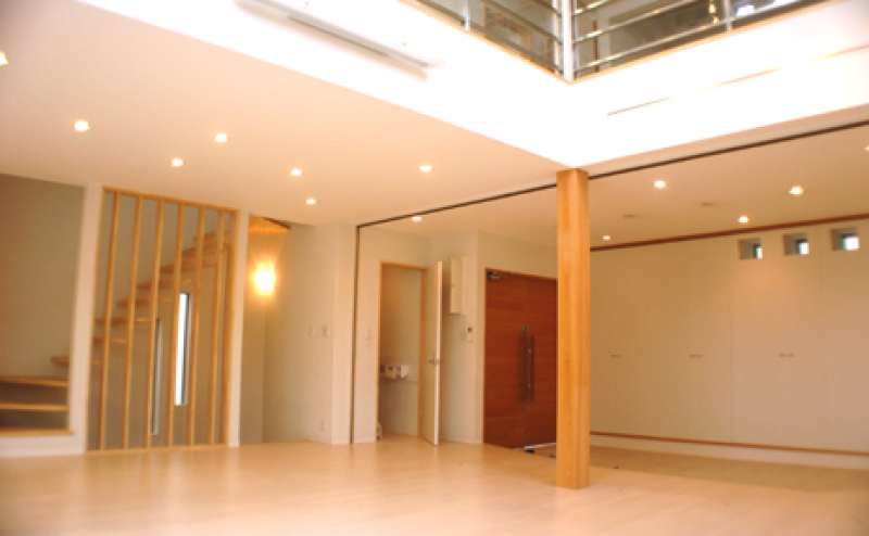 俯瞰撮影楽な吹抜、自然光差し込む充実したキッチンと明るいホール、地下は打ちっ放しのコンクリートで遊戯充実プレイルーム(卓球、ビリヤード、ダーツ等)。