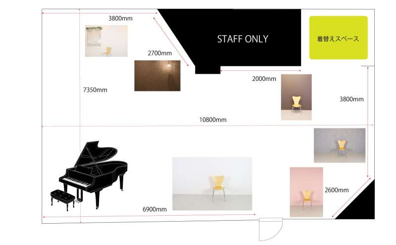 ■スタジオ内は盗難、事故防止の為モニターカメラによる管理を行っています。お着替えの際は別の場所でお願いします。