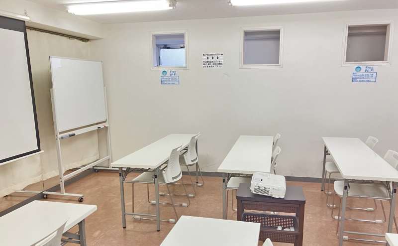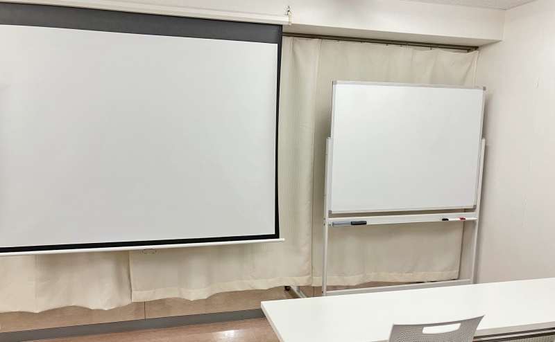 少人数の会議や打ち合わせ、面接会場にちょうどよい広さです。ホワイトボードなども完備していますのでビジネスにも適しています。