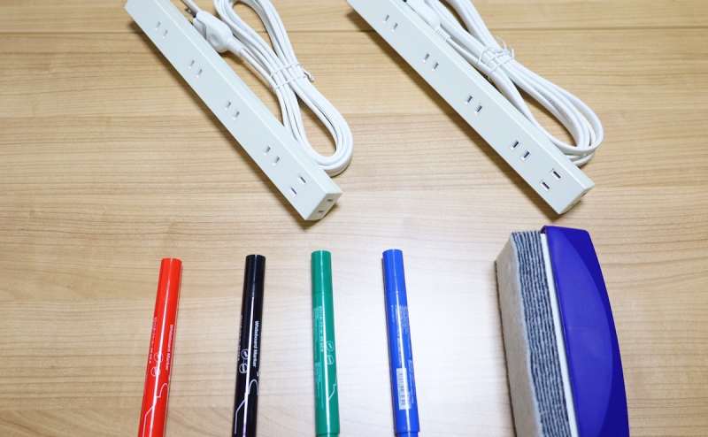 室内にはWifi、ホワイトボード、55インチモニタ、各種文具類、電源タップ等、会議に必要なものが用意されております。